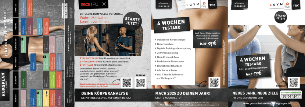 Langjährige Gestaltung und Betreuung des gesamten Markenauftritts für ein Gesundheitszentrum in Buggingen. Das Corporate Design wurde ganzheitlich entwickelt und konsequent auf alle Bereiche übertragen – von Print über Innenraumgestaltung bis hin zu digitalen Anwendungen und Social Media.